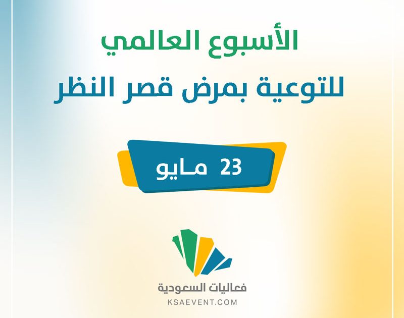 يحل شهر مايو لتبدأ أنشطة فعاليات الأسبوع العالمي للتوعية بمرض قصر النظر 2024 خلال الفترة 23- 28 من مايو سنويًّا. ويعتبر هذا الأسبوع رمز للتذكير بأهمية الفحص والعلاج وتثقيف المجتمع ضد مضاعفات قِصَرِ النظر.