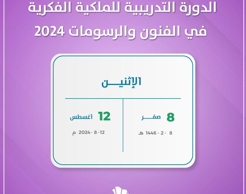 تستعد الهيئة السعودية للملكية الفكرية لاستقبال الدورة التدريبية للملكية الفكرية في الفنون والرسومات 2024 ذلك يوم الثاني عشر من اغسطس 2024 الموافق الثامن من صفر 1446 هجري.