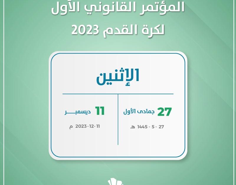 وينعقد المؤتمر القانوني الأول لكرة القدم 2023 بتنظيم الاتحاد السعودي لكرة القدم حيث يضم عدد من القانونيين المحليين والدوليين.