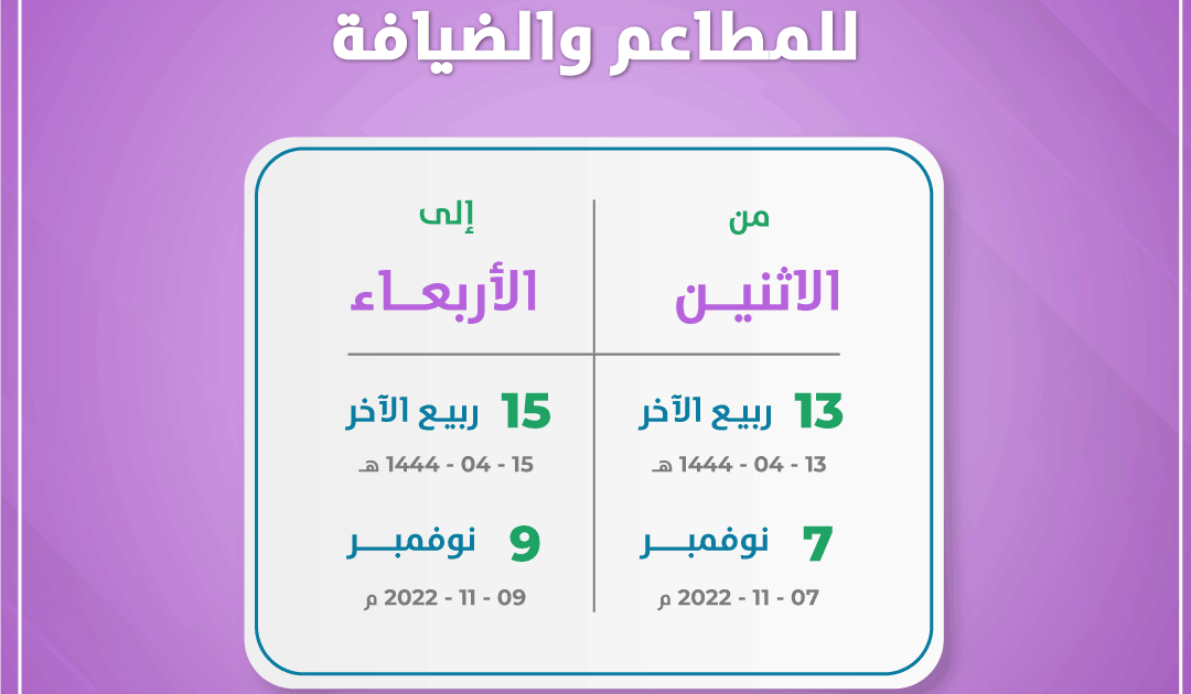 المعرض السعودي الدولي للمطاعم والضيافة 2022 والذي يقام في في المدة من 07– 09 نوفمبر 2022 ، والذي يقام في مركز الرياض الدولي للمؤتمرات والمعارض بمدينة الرياض في المملكة العربية السعودية.