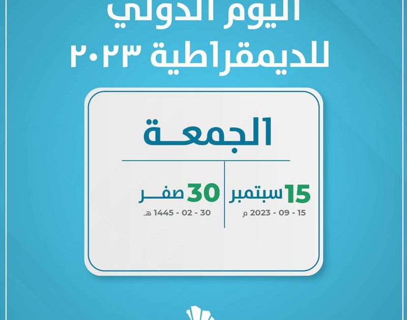 اليوم الدولي للديمقراطية 2023 يتيح الاحتفال الفرصة لاستعراض حالة الديمقراطية في العالم. الديمقراطية هي عملية بقدر ما هي هدف، ولا يمكن لمثال الديمقراطية أن يتحول إلى حقيقة واقعة يحظى بها الجميع في كل مكان إلا بالمشاركة الكاملة والدعم من قبل المجتمع الدولي والهيئات الحاكمة الوطنية والمجتمع المدني والأفراد، يمكن تحويل المثل الأعلى للديمقراطية إلى حقيقة ليتمتع بها الجميع في كل مكان.