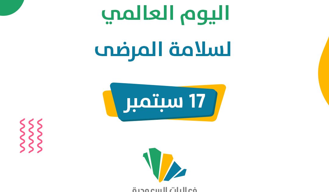 يحتفل الوسط الطبي بفعاليات اليوم العالمي لسلامة المرضى 2025 سنويا يوم 17 سبتمبر. وذلك بهدف تعزيز الفهم العالمي لمنظور سلامة المرضى.