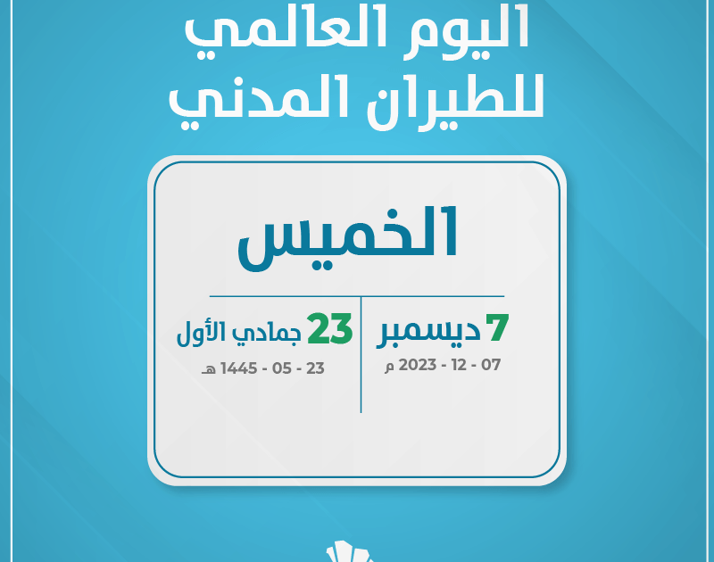 اليوم العالمي للطيران المدني ويوافق السابع من ديسمبر من كل عام حسب ما أعلنته الجمعية العامة للأمم المتحدة عام 1996