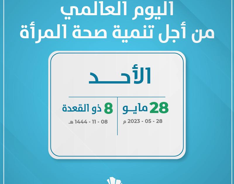 اليوم العالمي من أجل تنمية صحة المرأة 2023 تقرر يوم 28 مايو من كل عام الاحتفال بيوم صحة المرأة العالمي للتركيز على المشاكل الصحية الجنسية والإنجابية التي تعاني منها النساء حول العالم كصعوبة الحصول على الرعاية الصحية.