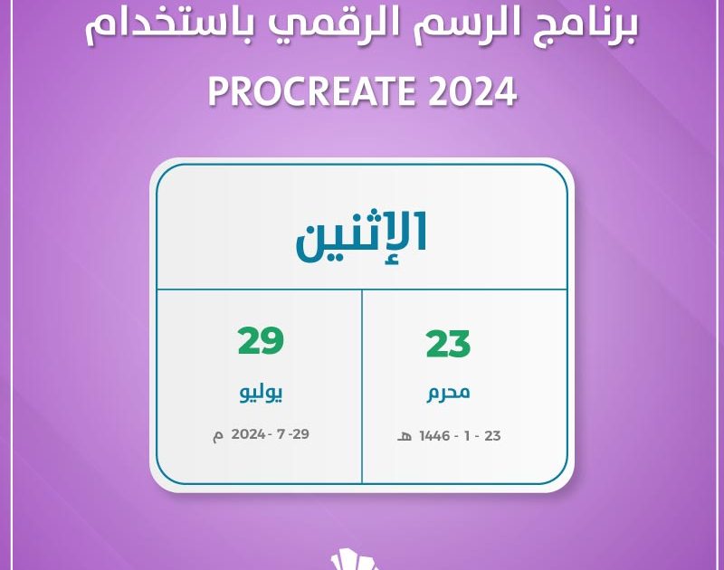 من ناحية أخرى، يشدد على المشاركات إحضار جهاز الآيباد وقلم إلكتروني مع تحميل وتنصيب برنامج PROCREATE قبل الحضور. الفعالية مجانية ومخصصة للسيدات. مما يوفر فرصة رائعة للمهتمات بتعلم أساسيات الرسم الرقمي واكتساب مهارات جديدة في هذا المجال المتطور.