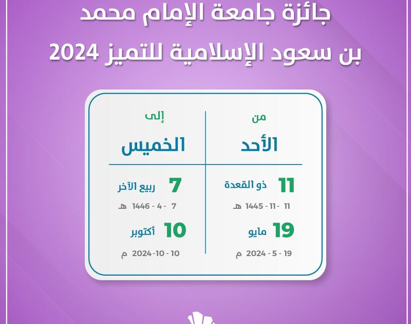 في أجواء تعليمية تنافسية تنطلق جائزة جامعة الإمام محمد بن سعود الإسلامية للتميز 2024. وذلك من أجل تعزيز التنافس في قطاعات التعليم والبحث العلمي.