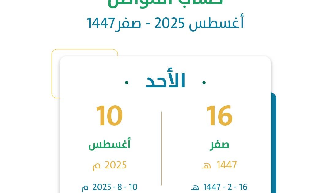 موعد صرف حساب المواطن في السعودية لشهر أغسطس 2025 م في يوم الأحد 16 صفر 1447 الموافق 10 أغسطس 2025.
