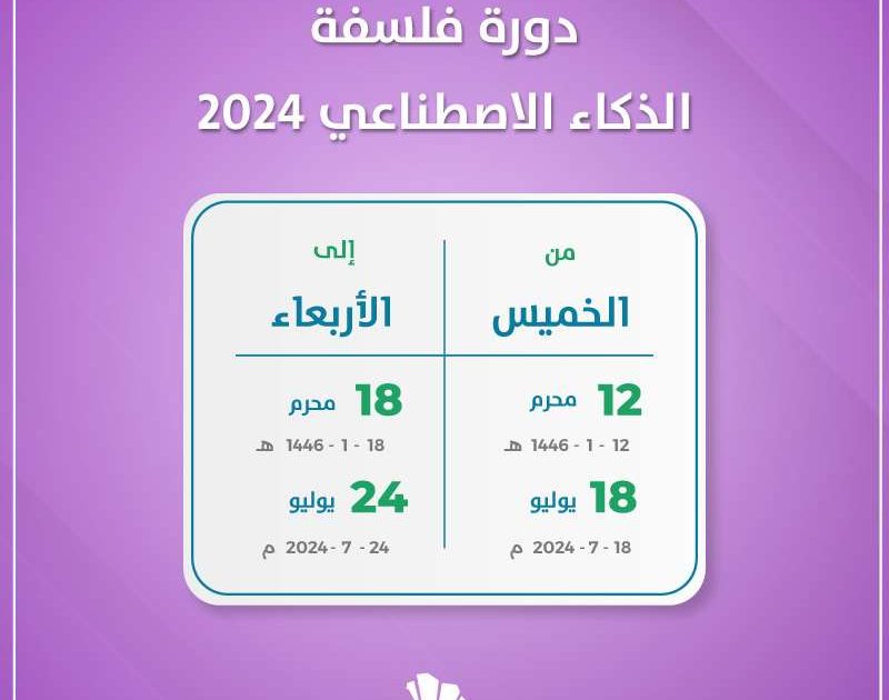 ستقام بفندق ريتز كارلتون بمدينة جدة دورة فلسفة الذكاء الاصطناعي 2024. وذلك من الثامن عشر وحتى الرابع والعشرين من شهر يوليو لعام 2024 ميلاديا. بينما يوافق هذا التاريخ الثاني عشر وحتى الثامن عشر من شهر محرم لعام 1446 هجريا.