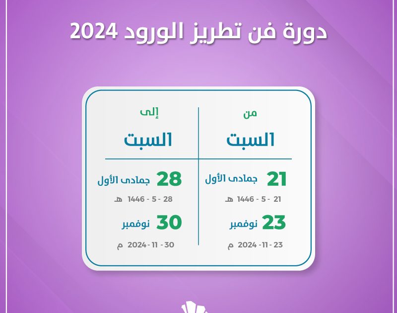 دورة فن تطريز الورود 2024 تركز على تعليم المتدربين كيفية تنفيذ تصاميم الورود التقليدية بأيديهم، مما يعزز فهمهم للأهمية التراثية لهذا الفن، ودوره في إثراء الثقافة المحلية في منطقة نجد. كما تشمل الدورة استعراضاً لتقنيات الغرز المختلفة. وكيفية استخدامها لإنتاج قطع مطرزة ذات لمسات جمالية تعكس التراث العريق.