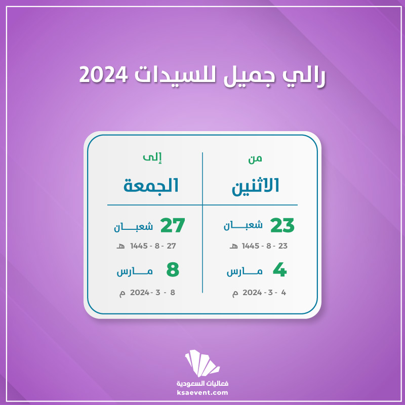 دعما للقطاع الرياضي السعودي ينعقد رالي جميل للسيدات 2024 بفعالياته المميزة خلال الفترة 4 – 8 مارس. وذلك بمشاركة محلية ودولية كبيرة.