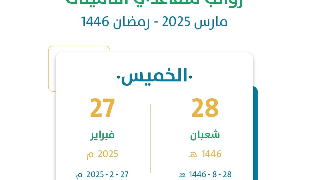 موعد صرف رواتب متقاعدي التأمينات في السعودية لشهر رمضان 1446هـ في يوم الخميس 28 شعبان 1446 هـ – 27 فبراير 2025م.