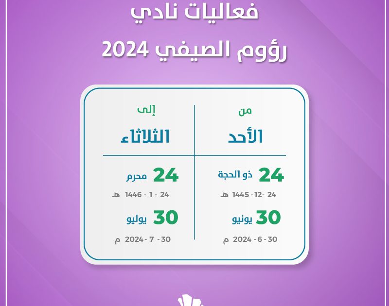 تستضيف جمعية روؤم بمحافظة رفحاء فعاليات نادي رؤوم الصيفي 2024. وذلك خلال الفترة الثلاثون من يونيو حتى الثلاثون من يوليو الموافق الرابع والعشرون من ذو الحجة حتى الرابع والعشرون من محرم لعام 1446.