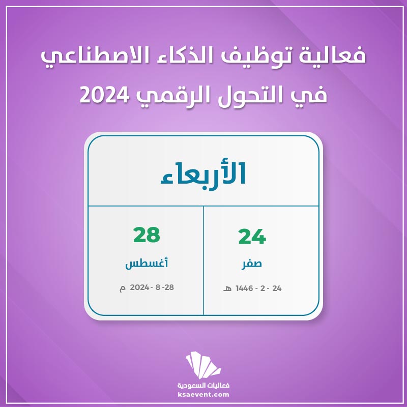 تعد فعالية توظيف الذكاء الاصطناعي في التحول الرقمي 2024 من الأحداث المهمة التي تسلط الضوء على دور الذكاء الاصطناعي في تسريع عمليات التحول الرقمي. من المقرر أن تعقد هذه الفعالية في الرياض يوم 28 أغسطس 2024. وتهدف إلى تقديم رؤى جديدة حول كيفية استغلال الذكاء الاصطناعي لتحسين الأداء وتحقيق الكفاءة في مختلف القطاعات.