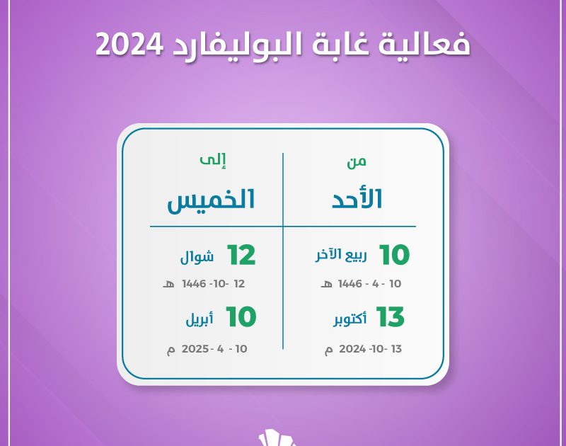 تستضيف بوليفارد وورلد الرياض فعالية غابة البوليفارد 2024 خلال الفترة الثالث عشر من أكتوبر حتى العاشر من أبريل لعام 2025.
