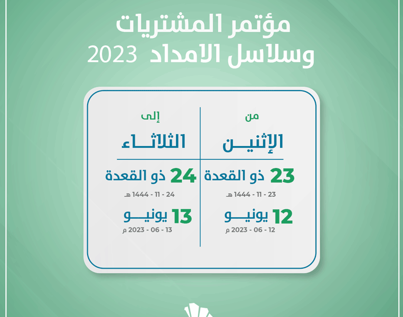 تنطلق فعاليات مؤتمر المشتريات وسلاسل الإمداد 2023 في فندق جي دبليو ماريوت الرياض 12 – 13 يونيو 2023. كما يعتبر هذا المؤتمر حدثًا مرموقًا لمتخصصي المشتريات وسلسلة التوريد في جميع الصناعات في المملكة العربية السعودية والمنطقة العربية بأكملها.