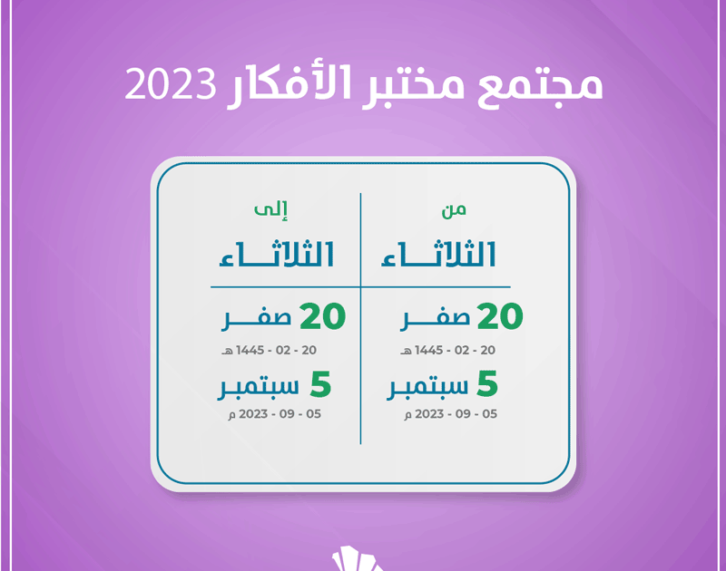 تحتضن مدينة ظهران بمركز الاثراء بالمملكة العربية السعودية مجتمع مختبر الأفكار 2023. وذلك يوم الخامس من سبتمبر لعام 2023 ميلاديا. يوافق هذا التاريخ العشرين من صفر لعام 2023 ميلاديا.