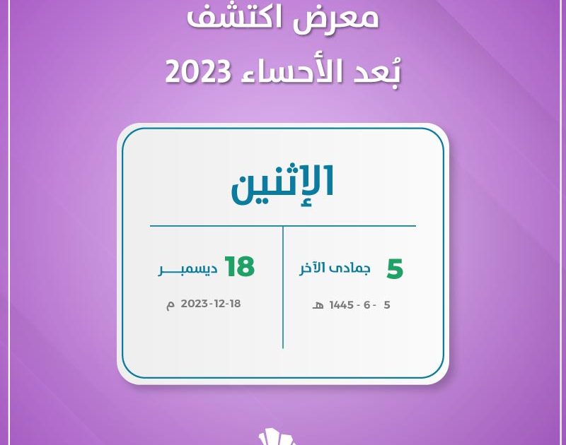 في أجواء سياحية وتشويقية ينطلق معرض اكتشف بُعد الأحساء 2023 يوم 18 ديسمبر. وذلك من أجل إبراز الأحساء كأحد الوجهات السياحية في المملكة.
