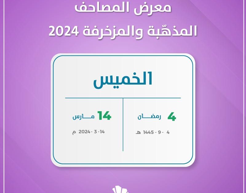 تستضيف مكتبة الملك عبدالعزيز العامة معرض المصاحف المذهّبة والمزخرفة 2024. وذلك بمناسبة حلول شهر رمضان الكريم 1445 هـ.