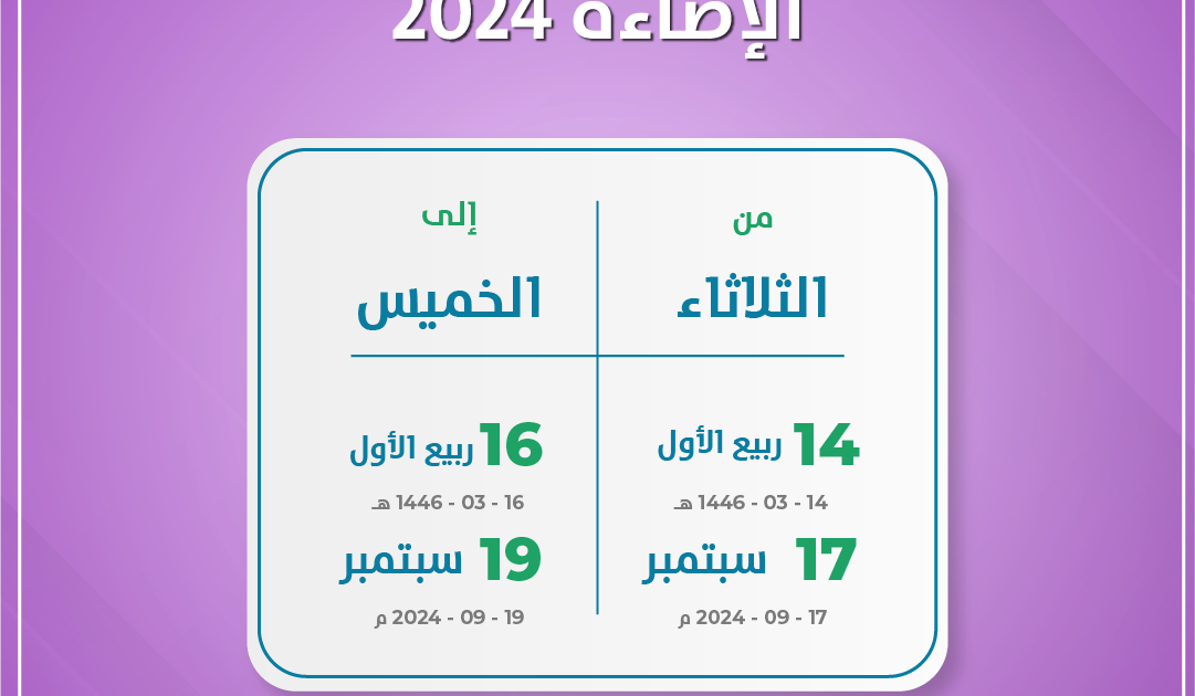 موعد عيد الفطر المبارك 1447/ 2026 في يوم الجمعة 1 شوال 1447هـ – الموافق 20 مارس 2026م . 1447/10/1 هـ…
