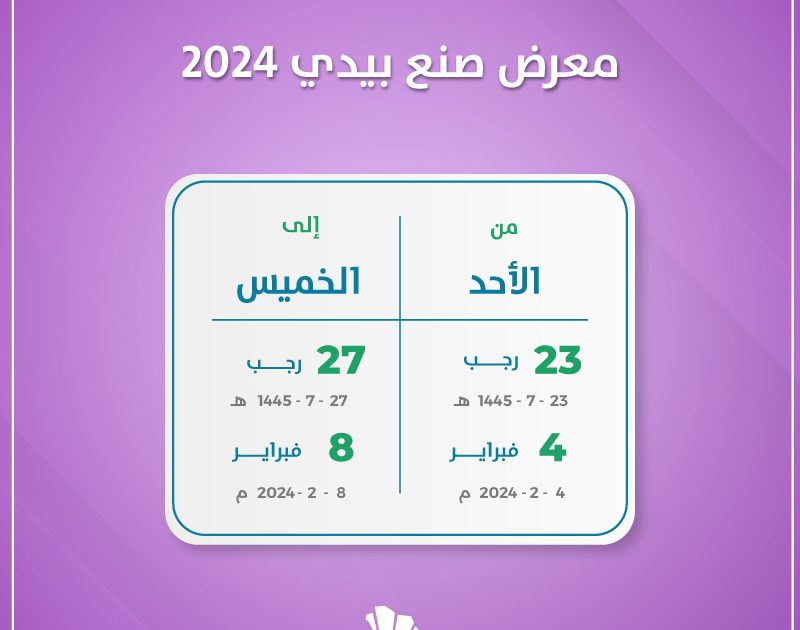 افتتح محافظ جدة نيابةً عن مستشار خادم الحرمين الشريفين أمير منطقة مكة المكرمة الأمير خالد الفيصل، معرض صنع بيدي 2024 السابع عشر للمشروعات الصغيرة، والذي يستمر لمدة خمسة أيام، بمركز الملك فيصل للمؤتمرات.