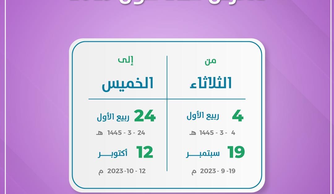 موعد فصل الربيع 2026 في يوم الجمعة 1 شوال 1447هـ – الموافق 20 مارس 2026م . 1447/10/1 هـ – 2026/3/20…