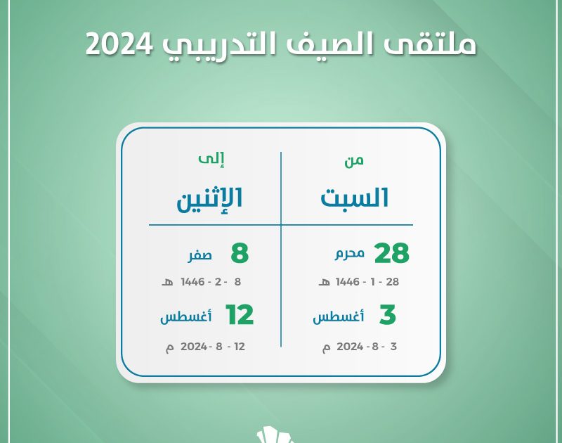 تستضيف الهيئة الملكية في مدينة ينبع ملتقى الصيف التدريبي 2024. خلال الفترة الثالث من أغسطس حتى الثاني عشر من أغسطس الموافق الثامن والعشرون من محرم حتى الثامن من صفر لعام 1446.