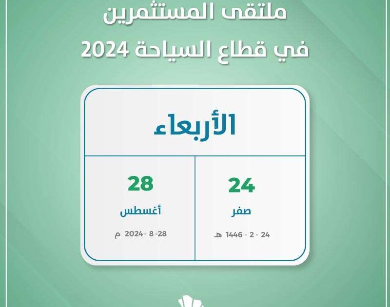 ستنظم غرفة الفصيم بالتعاون مع وزارة السياحة السعودية ملتقى المستثمرين في قطاع السياحة 2024. وذلك بمقر الغرفة بمدينة بريدة. يوم الأربعاء الموافق الثامن والعشرين من شهر أغسطس لعام 2024 ميلاديا. بينما يوافق هذا التاريخ الرابع والعشرين من شهر صفر لعام 1446 هجريا.