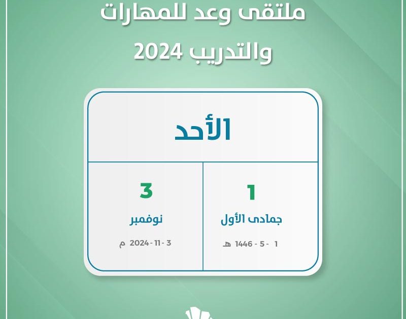 سيستضيف مركز الأمير سلطان الحضاري ملتقى وعد للمهارات والتدريب 2024. وذلك يوم الأحد الأول من شهر جمادى الأول لعام 1446 هجريا. بينما يوافق هذا التاريخ الثالث من شهر نوفمبر لعام 2024 ميلاديا.