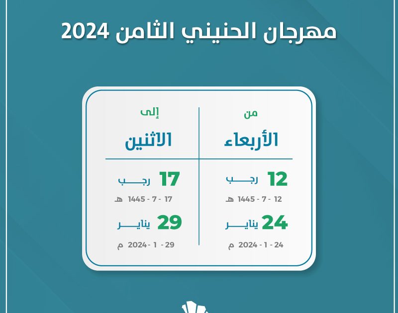 ومن المقرر إقامة مهرجان الحنيني الثامن 2024 في سوق المسوكف التراثي بعنيزة خلال الفترة 24 -29 يناير. وذلك بمشاركة جهات حكومية وخاصة.