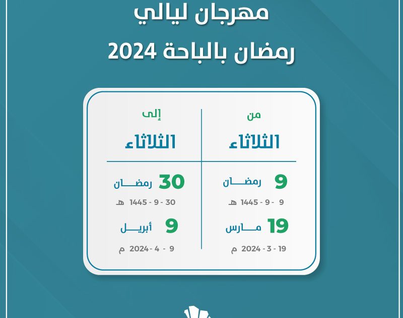 دعماً للأنشطة التجارية والترفيهية ينعقد مهرجان ليالي رمضان بالباحة 2024 طوال الشهر الفضيل. وذلك في المنطقة المركزية بمدينة الباحة.