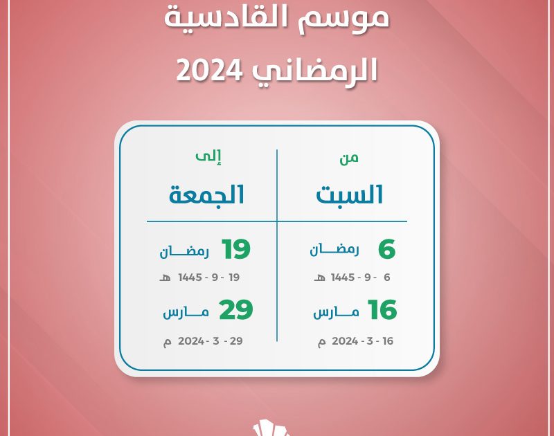 يستضيف نادي القادسية الرياضي بمدينة الخبر موسم القادسية الرمضاني 2024، خلال الفترة من 6 ـ 19 من شهر رمضان.