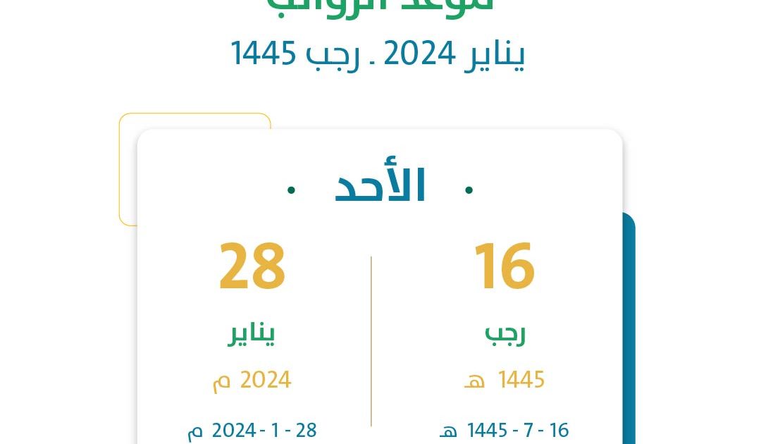 راتب الموظفين الحكوميين السعوديين لشهر رجب 1445 هـ في يوم الأحد 28 يناير 2024.