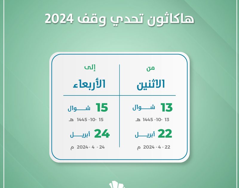 أطلق محافظ الهيئة العامة للأوقاف هاكاثون تحدي وقف 2024 تحقيقا لمستهدفات رؤية المملكة 2030. وينعقد تحديدا خلال الفترة 22 – 24 أبريل.