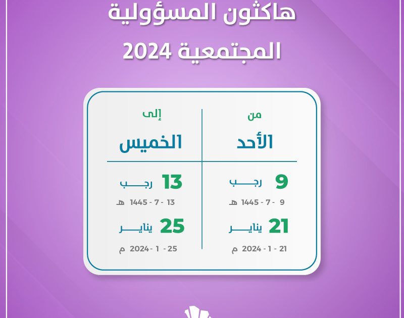 وينعقد هاكثون المسؤولية المجتمعية برعاية وزارة الاتصالات وتقنية المعلومات خلال الفترة 21- 25 يناير، وبتنظيم جمعية المسؤولية المجتمعية.