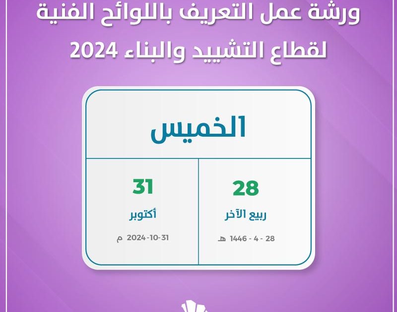 ورشة عمل التعريف باللوائح الفنية لقطاع التشييد والبناء 2024