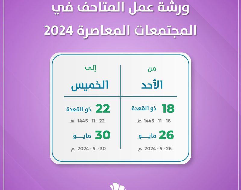 ومن المقرر أن تكون ورشة عمل المتاحف في المجتمعات المعاصرة 2024 مفتوحة لأول 100 من الحضور المسجلين على أساس أسبقية الحضور من خلال التسجيل.