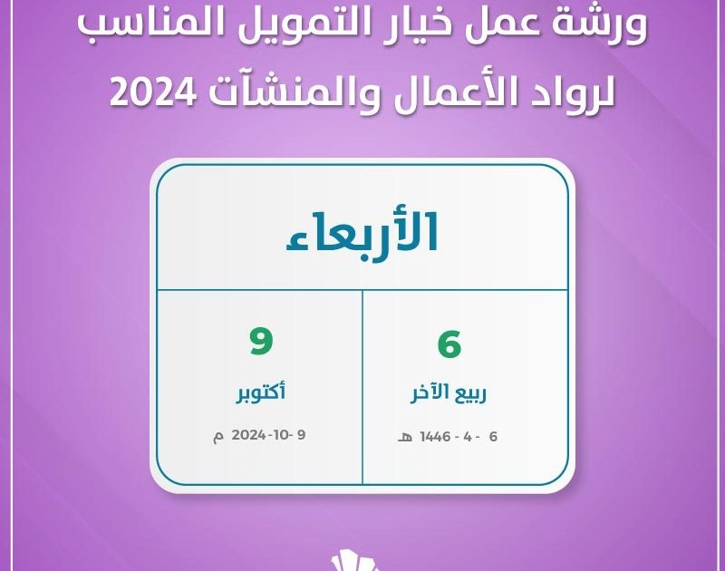 تستعد غرفة جازان لإستقبال ورشة عمل خيار التمويل المناسب لرواد الأعمال والمنشآت 2024 والمقرر إقامتها يوم السادس من ربيع الآخر 1446 هجري الموافق التاسع من أكتوبر 2024.