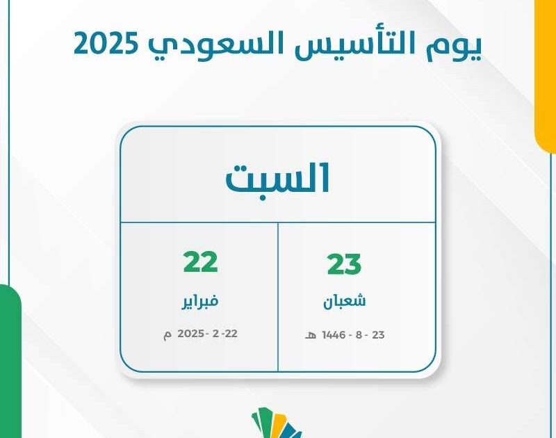 يحل يوم 22 فبراير الاحتفال السنوي بفعاليات يوم التأسيس السعودي 2025. ويعتبر هذا اليوم احتفال ملكي وشعبي واجازة سنوية تنفذ من خلال فعاليات وأنشطة مميزة.