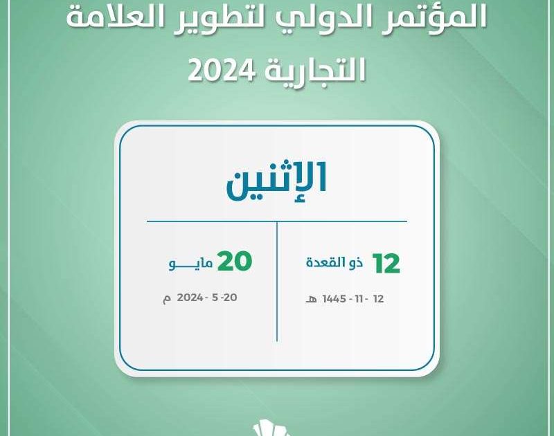 ينطلق بفندق ماريوت بمدينة الرياض بالمملكة العربية السعودية المؤتمر الدولي لتطوير العلامة التجارية 2024. وذلك يوم الإثنين الموافق العشرين من شهر مايو لعام 2024 ميلاديا. بينما يوافق هذا التاريخ الثاني عشر من شهر ذو القعدة لعام 1445 هجريا.