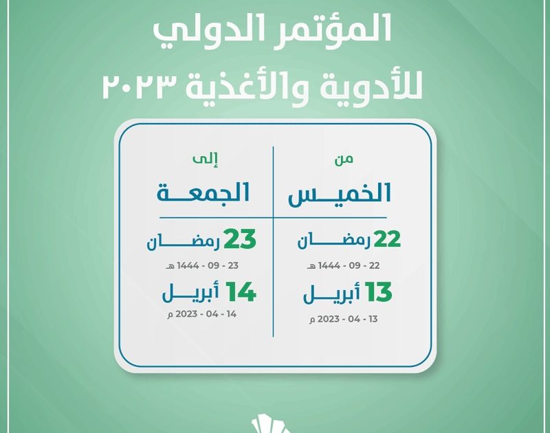 ينطلق المؤتمر الدولي للأدوية والأغذية 2023 في مدينة الرياض خلال الفترة من 13 – 14 أبريل 2023، للعمل على تبادل الخبرات والتجارب لتطوير مجالات الأدوية والأغذية.