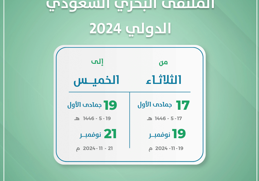 يستعد الملتقى البحري السعودي الدولي 2024 لإقامة النسخة الثالثة في نوفمبر 2024 بمدينة جدة. تنظم الملتقى البحري السعودي الدولي 2024 القوات البحرية الملكية السعودية. ويعقد الملتقى البحري السعودي الدولي 2024 كل عامين في (نوفمبر). كما يناقش أهم التطورات والقضايا في البيئة البحرية وما يتعلق بالأمن البحري الإقليمي والدولي، كما يسلط الضوء على أحدث التقنيات والمعدات والأنظمة البحرية.