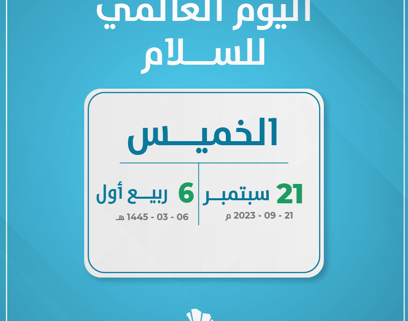 يحتفل العالم أجمع باليوم العالمي للسلام 2023 في 21 سبتمبر. أعلنته الجمعية العامة للأمم المتحدة يومًا مكرّسا لتعزيز مُثل وقيم السلام في أوساط الأمم والشعوب وفيما بينها وبمناسبة الذكرى الثلاثين لإحياء هذا اليوم، سيكون شعار الاحتفالات في هذه السنة كالآتي: «السلام والديمقراطية: أَبلِغْ صوتك». فقد جاء في ديباجة ميثاق الأمم المتحدة أنّ الغرض من إنشاء المنظمة هو منع نشوب النزاعات الدولية وحلّها بالوسائل السلمية، والمساعدة على إرساء ثقافة السلام في العالم.