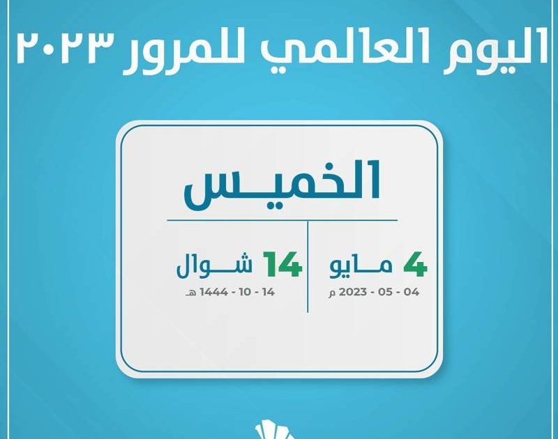 يحتفل العالم كل عام في الرابع من مايو باليوم العالمي للمرور لأحياء ذكري ضحايا حوادث المرور على الطرق العالمي للمرور 2023