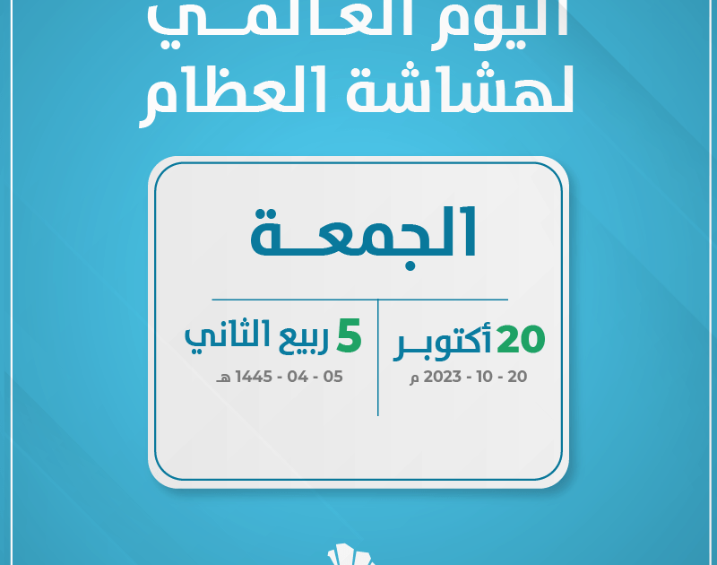يحتفل العالم أجمع باليوم العالمي لهشاشة العظام 2023 يصادف اليوم العالمي لهشاشة العظام تاريخ 20 أكتوبر من كل عام.