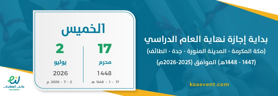 بداية إجازة نهاية العام الدراسي (مكة المكرمة – المدينة المنورة – جدة – الطائف) (1447 – 1448هـ) الموافق (2025-2026م)