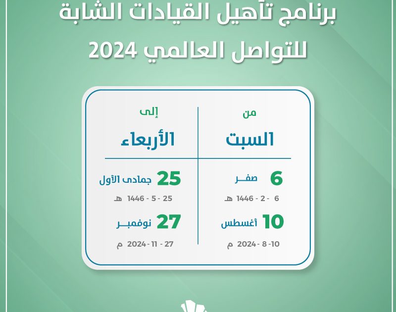 دعماً لرؤية المملكة 2030 ينطلق برنامج تأهيل القيادات الشابة للتواصل العالمي 2024 ويمكن التسجيل فيه خلال الفترة 10- 29 أغسطس.
