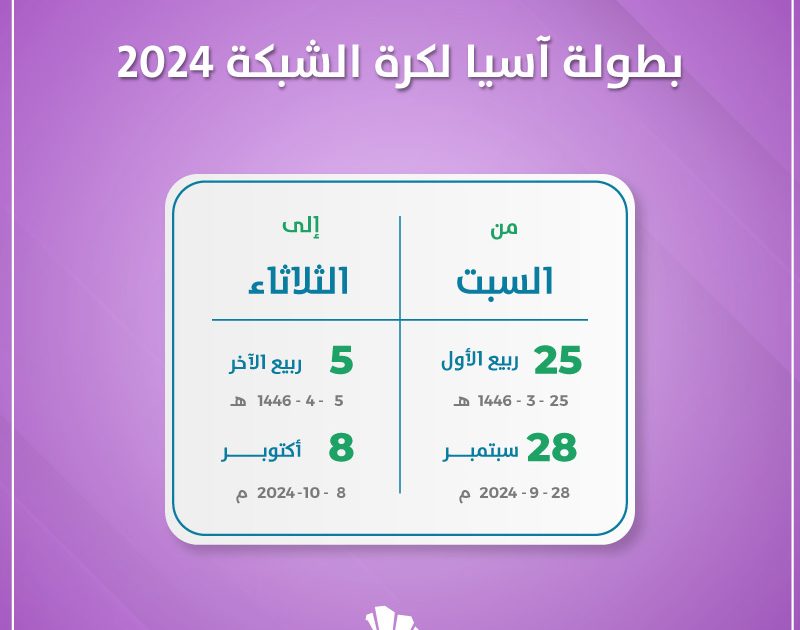أعلن الاتحاد الآسيوي لكرة الشبكة فوز المملكة باستضافة وتنظيم بطولة آسيا لكرة الشبكة 2024 للسيدات. وذلك خلال الفترة من 28 سبتمبر وحتى 8 أكتوبر 2024.