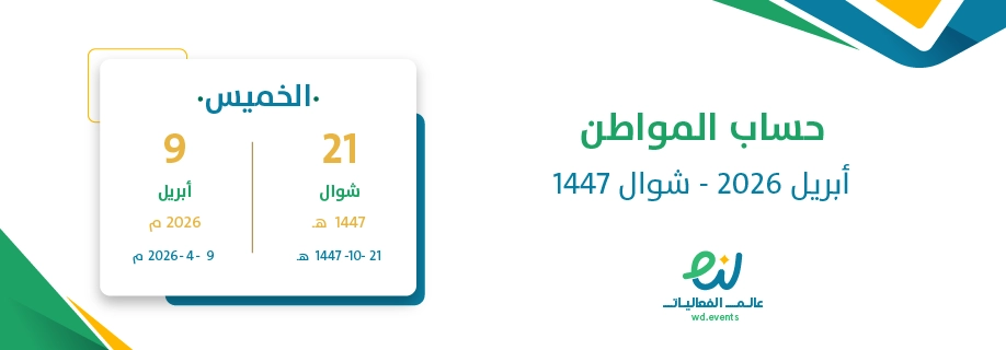 موعد صرف حساب المواطن أبريل 2026 – شوال 1447 في يوم الخميس 21 شوال 1447 الموافق 9 أبريل 2026.