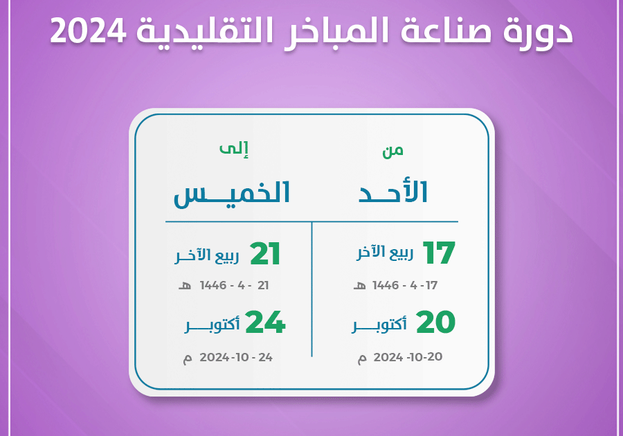 علاوة على ذلك، تهدف دورة صناعة المباخر التقليدية 2024 إلى إحياء الحرف التراثية السعودية ودعم المتدربين لبدء مشاريعهم الخاصة في هذا المجال. مما يعزز فرصهم لدخول سوق العمل. كما تسعى الدورة إلى تعزيز الهوية الوطنية من خلال المحافظة على ممارسات صناعة المباخر التقليدية ونقلها إلى الأجيال القادمة.