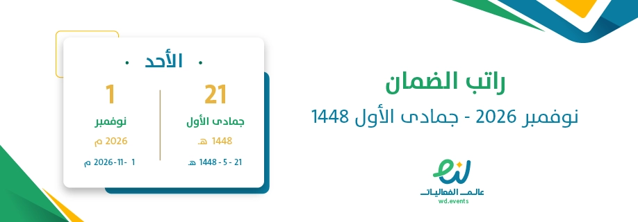 موعد صرف راتب الضمان – نوفمبر 2026 – جمادى الأول 1448. وذلك يوم الأحد 1 نوفمبر 2026م – الموافق 21 جمادى الأول 1448 هـ